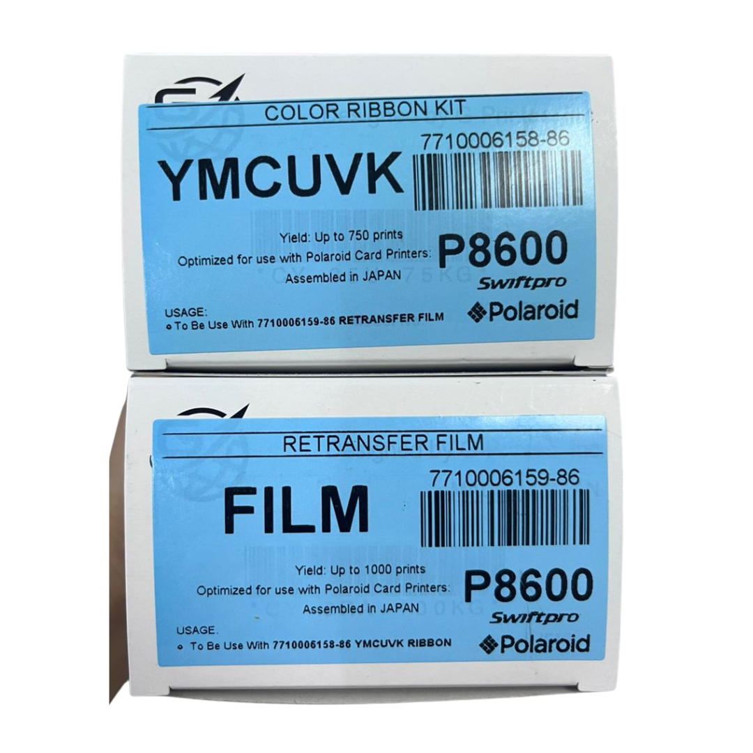 The Polaroid 6-8000 kit consist of a YMCK ribbon for printing a combination of full-color images and one-color text or barcode, and the transfer film. Compatible with Polaroid P8600 Card Printer.
